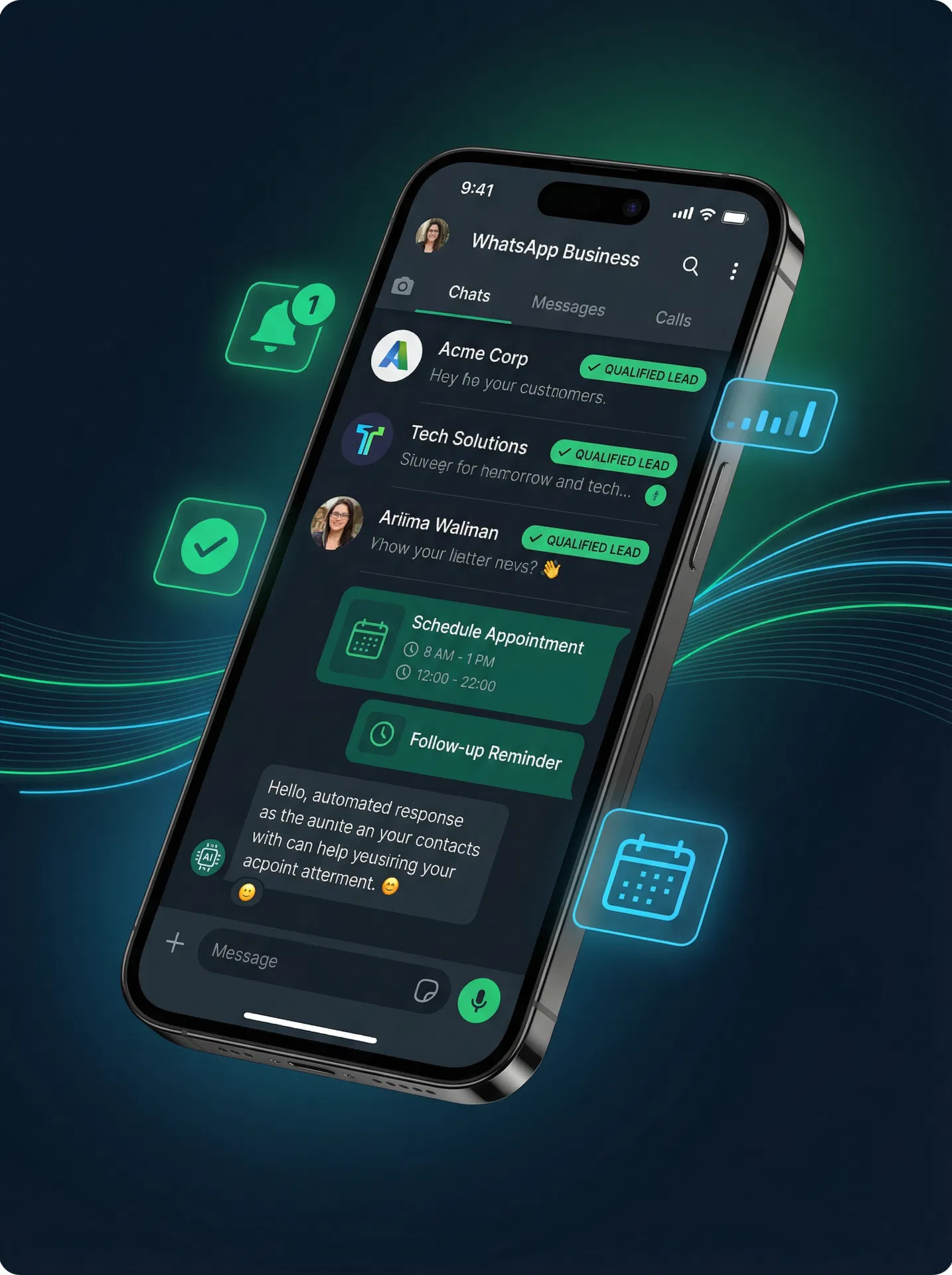 Implantamos uma estrutura inteligente no WhatsApp da sua empresa para responder mais rápido, qualificar contatos e recuperar oportunidades perdidas.